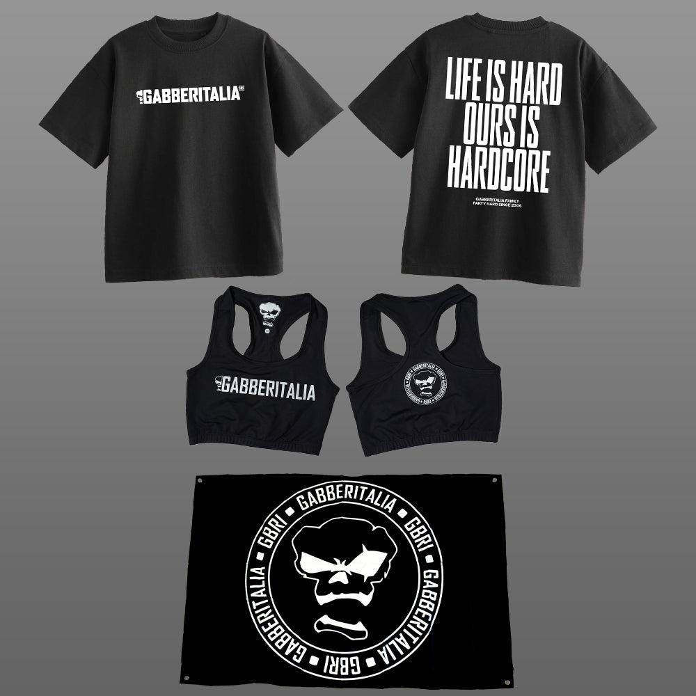 Bandiera nera con logo e scritta GABBERITALIA stampati